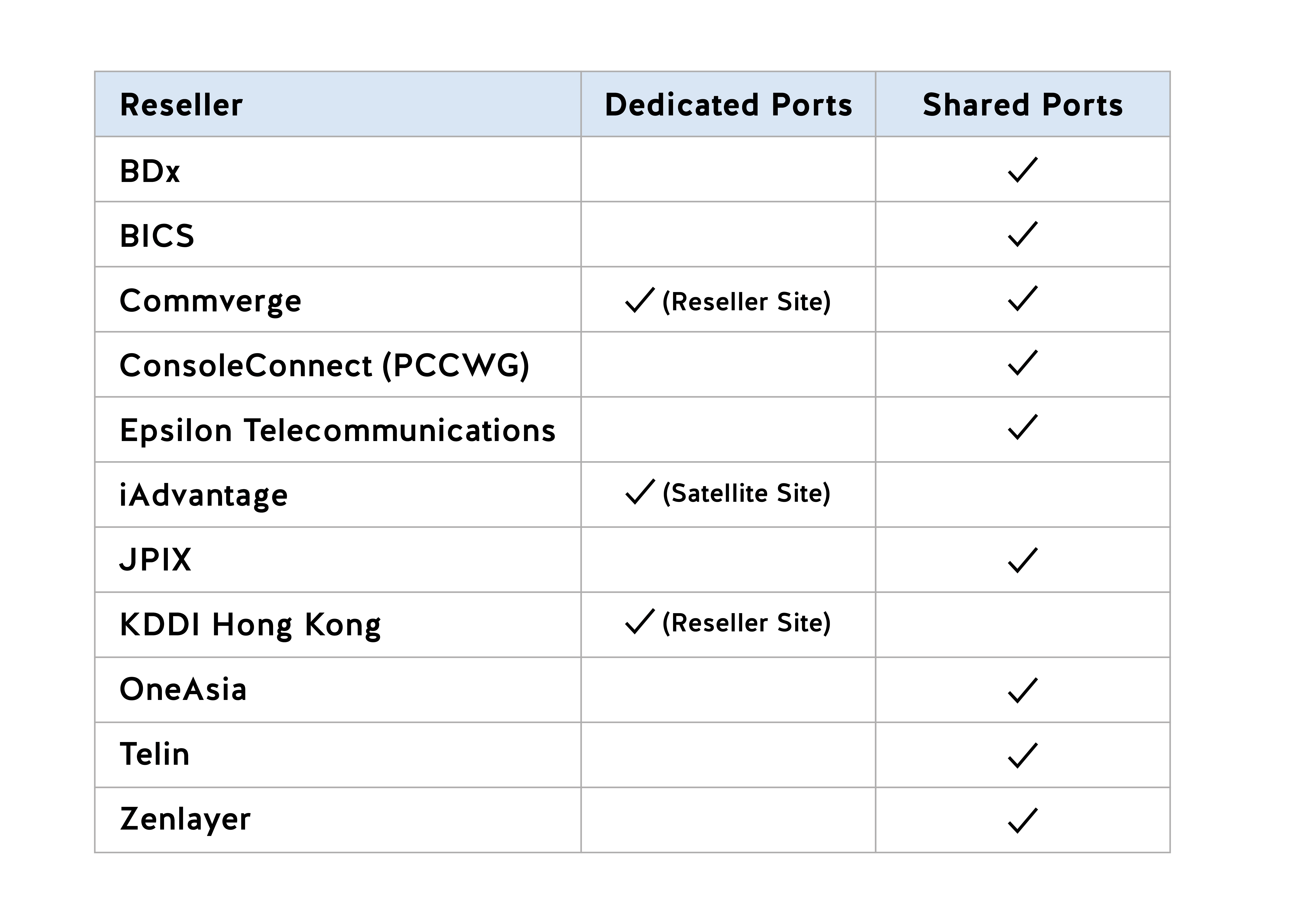 This Reseller Program will be of a non-exclusive arrangement. Reseller MUST have a Satellite or Reseller Site or dedicated connections to the HKIX. There are two modes of topology (Shared Ports and Dedicated Ports) for the Reseller’s network set up. All IXPs, Data Centres, local and regional ISPs can be our Resellers. If you want to learn more about the Reseller Program, please contact us for further information.